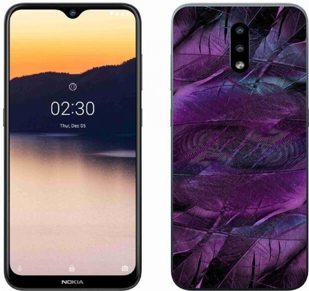 Za super cenu perfektně ochrání záda a obvod Vašeho telefonu. Gelový kryt mmCase skvěle sedí na mobil Nokia 2.3 - fialová pírka