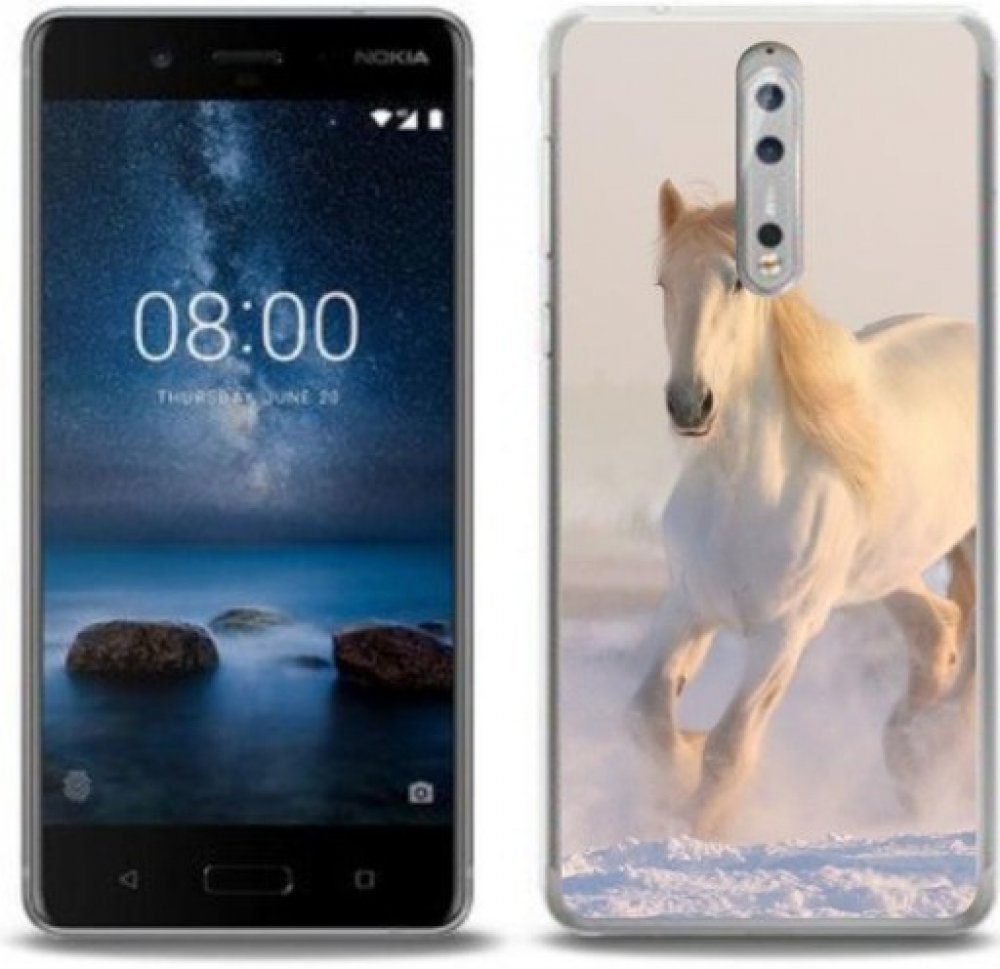 Kvalitní gelový obal mmCase na mobil Nokia 8 - kůň ve sněhu za super cenu!