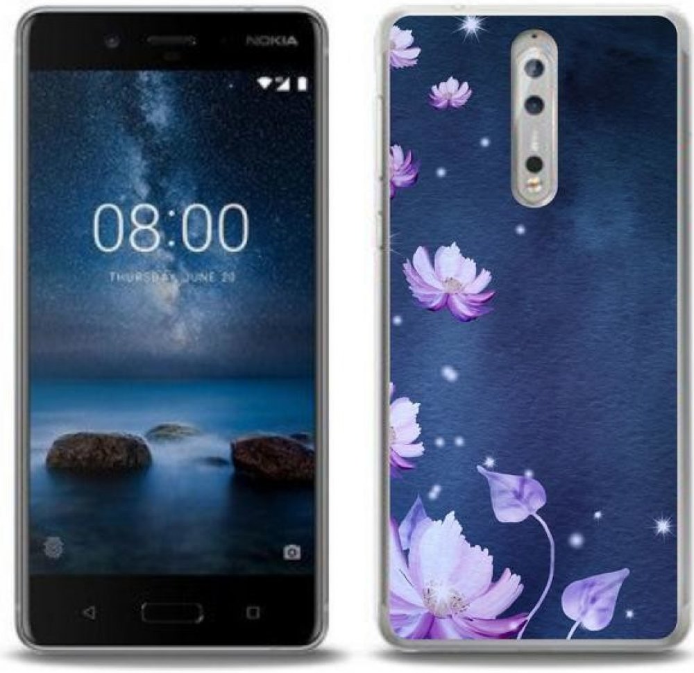 Kvalitní gelový obal mmCase na mobil Nokia 8 - padající květy za super cenu!