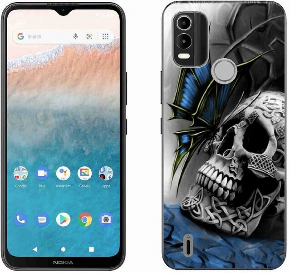 Pouzdro mmCase Gelové Nokia C21 Plus - motýl a lebka