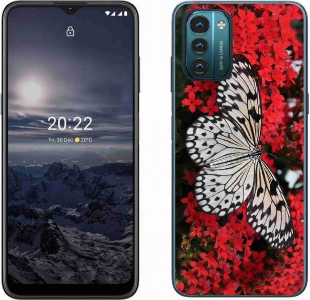 Za super cenu perfektně ochrání záda a obvod Vašeho telefonu. Gelový kryt mmCase na mobil Nokia G11/G21 - černobílý motýl 1