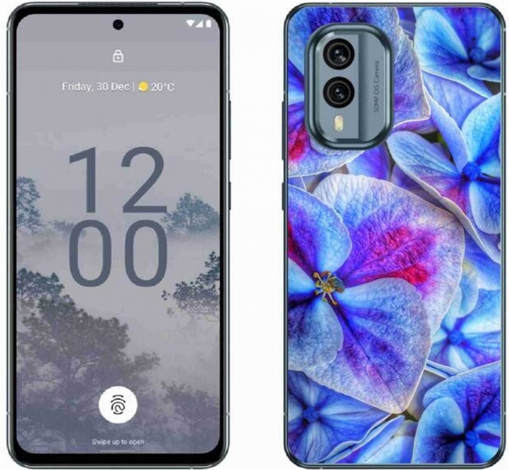 Skvělá cena, dokonalá ochrana Vašeho telefonu proti poškrábání. Gelový kryt mmCase na mobil Nokia X30 5G - modré květy 1