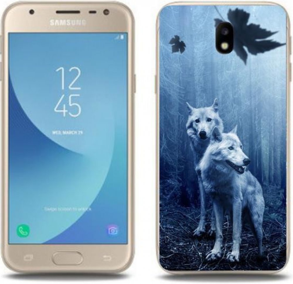 Kvalitní gelový kryt mmCase na mobil Samsung Galaxy J3 (2017) - vlci v lese za super cenu!