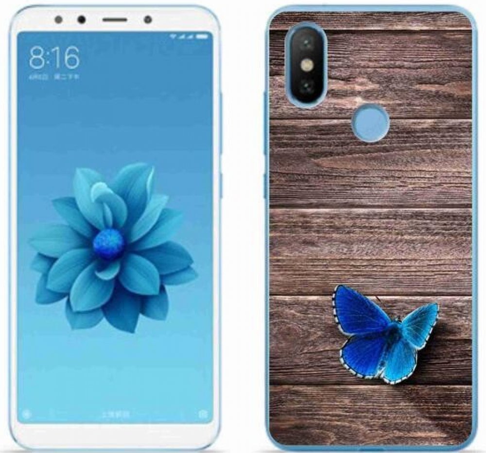 Za super cenu perfektně ochrání záda a obvod Vašeho telefonu. Gelový kryt mmCase padne skvěle na mobil Xiaomi Mi A2 - modrý motýl 1