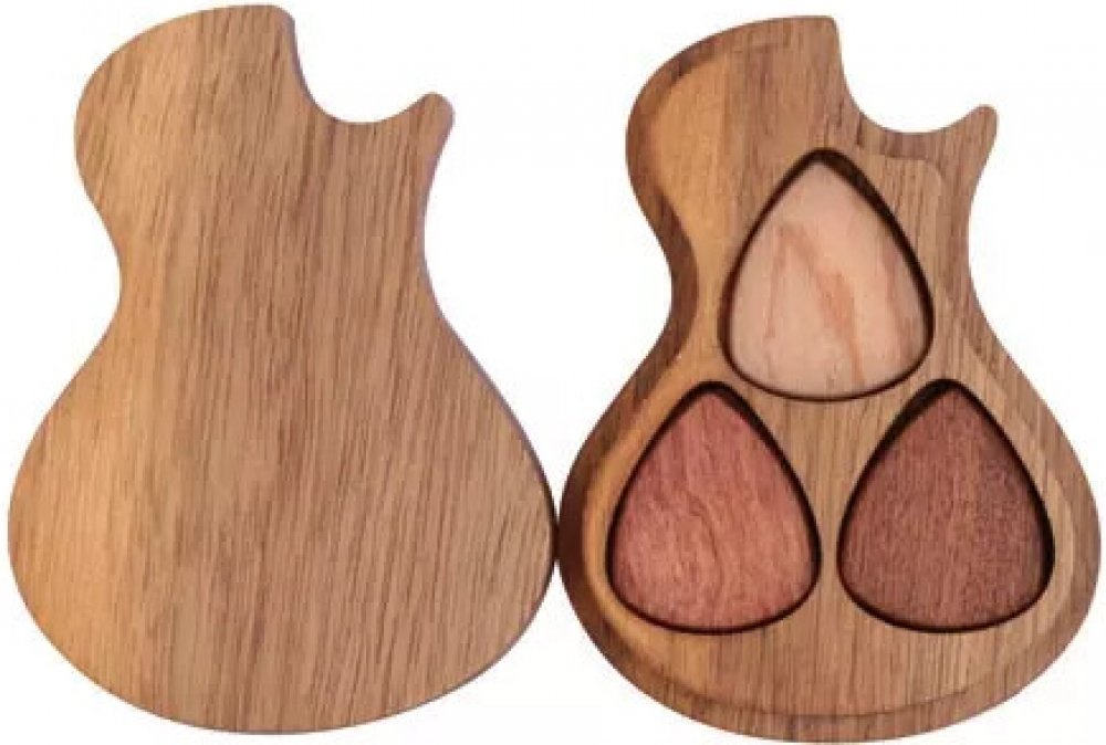 Fzone PC-13 Solid Wood je krásné designové pouzdro na trsátka z masivního dřeva ve tvaru kytary. Rozměry pouzdra jsou 95 x 70 x 22 mm. Součástí dodávky jsou tři měkká trsátka.