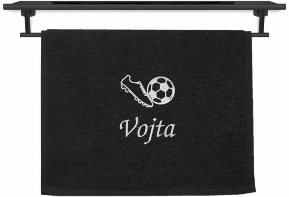 Povlečení Plus ručník se jménem černý 30 x 50 cm kopačka a míč
