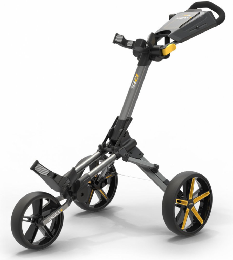 PowaKaddy manuální MICRA Push Cart Gun Metal+Yellow Trim