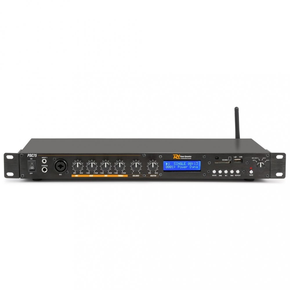 Multimediální přehrávač se zabudovaným MP3 přehrávačem a Bluetooth přijímačem. USB port a SD slot, 1x kombinovaný mikrofonní vstup XLR/Jack 6,3 mm, 3x linkový vstup RCA, Tape in/out RCA, linkový výstup RCA a 2x XLR výstup. 19“ rozměr pro instalaci do racku. IR dálkový ovladač.