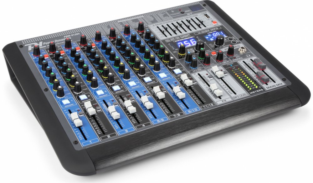 A 12 channel professional mixer with built-in USB player and BT receiver. Perfect for use on live stage setups, houses of worship or other multi-input venues6 Balanced mono microphone inputs (XLR)