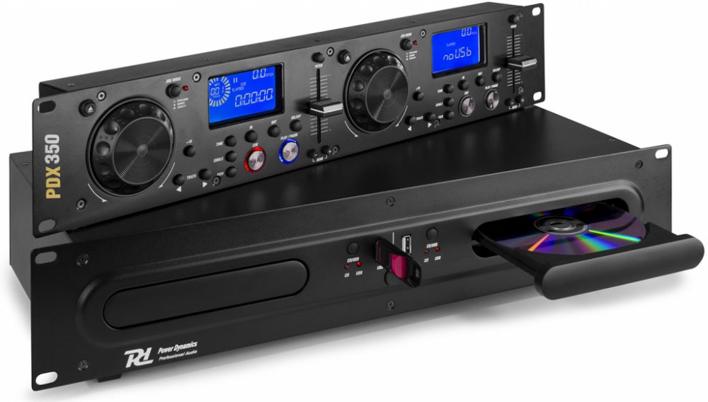 Dvojitý CD/MP3 přehrávač vhodný pro DJe, hudební bary a kluby i pro mobilní akce. 2x USB port, ovládací panel MP3 přehrávače, standardní DJ funkce. Multifunkční pogumované ovládací JOG kolo, Anti-shock. // Originální popis produktu (EN): The PDX350 is a dual CD/MP3/USB player that offers great features like Anti-Shock using RAM buffer memory, seamless loop on every player with Reloop function and the good looks to match. The large LCD display with blue backlight gives you a superb view with all of the information you need to see. The PDX350 also has triple function rubber jog wheels with finger grips, instant start & CUE with preview and two universal USB ports. Rubber jog wheels with finger grips. Two universal USB ports. Playback: CD, MP3. Large blue LCD display. Supports external hard disks (FAT 16/32). Triple function JOG dial Pitch Bend/Scratch/Search. Pitchbend via jog wheel or buttons +/-12%. Anti-shock using RAM buffer memory (40 seconds). Instant-start & cue with preview. 2-Ch