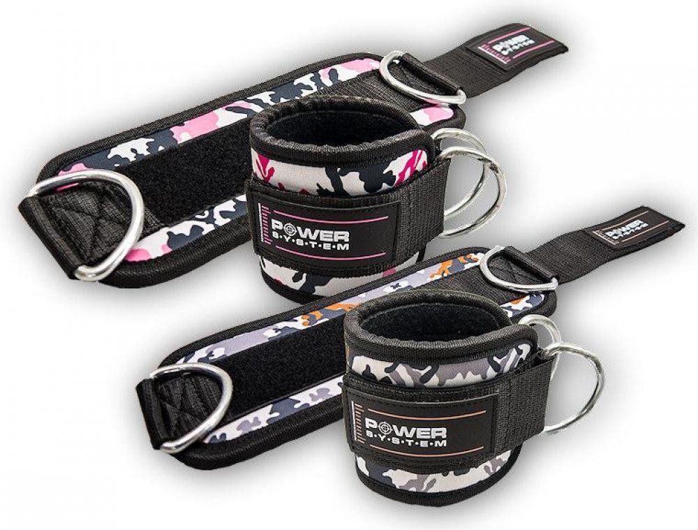 Pomocné popruhy upněte pomocí suchého zipu kolem kotníků. Do dvou ocelových polokroužků připojte pomocí karabiny Vaši spodní kladku či expander.