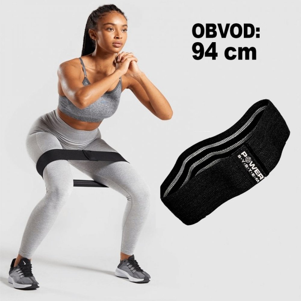 Textilní posilovací guma na zadek a stehna, která je vhodná pro efektivní procvičení stehenních a pažních svalů, rehabilitaci, rozehřátí před tréninkem a k aktivaci svalů kolem boků a kloubů s cílem zvýšení rychlosti a síly.