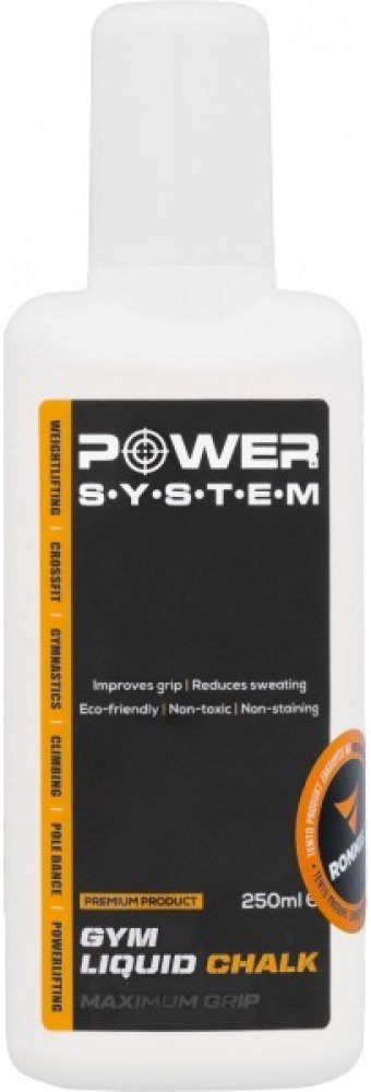 POWER SYSTEM Liquid Chalk tekutou křídu nabízíme ve 250 ml, 100 ml a 50 ml uzavíratelných lahvičkách .
