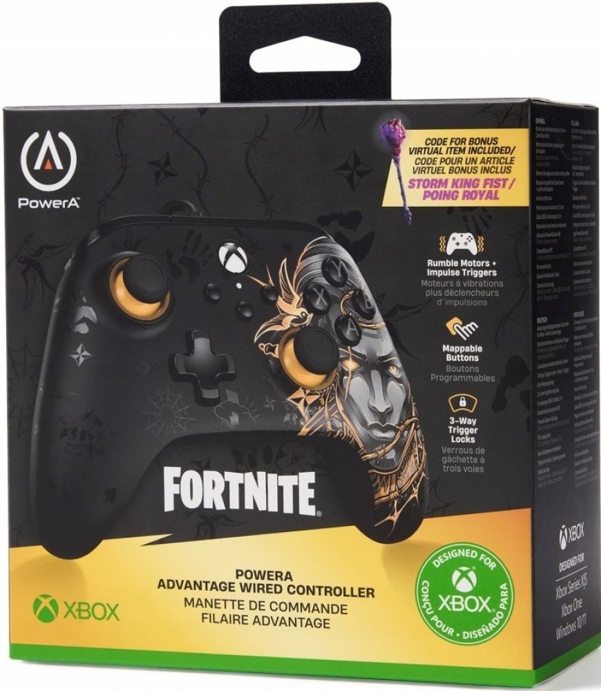 Gamepad PowerA Advantage Wired Controller - Fortnite Midas - Xbox Series X|S Oficiálně licencovaný herní ovladač PowerA Advantage pro Xbox Series X|SSeznamte se s oficiálně licencovaným drátovým herním ovladačem PowerA Advantage pro Xbox Series X|S, přinášející fanouškům Fortnite unikátní design s motivem krále Midase. Tento stylový gamepad v černo-zlatém provedení nejen vypadá skvěle, ale zároveň poskytuje špičkové funkce pro hráče. Díky dvěma programovatelným tlačítkům, která si můžete nastavit během hry, a tříúrovňovým zámkům spouští, získáte rychlejší reakce a přesnější kontrolu. Ergonomický design s protiskluzovými kroužky na analogových páčkách a extra dlouhý 3metrový USB-C kabel vám zajistí pohodlí a stabilní připojení při dlouhých herních seancích. S ovladačem PowerA Advantage získáte bonusový předmět do hry Fortnite!V balení tohoto ovladače PowerA Advantage pro Xbox Series X|S naleznete speciální kód, který vám odemkne...