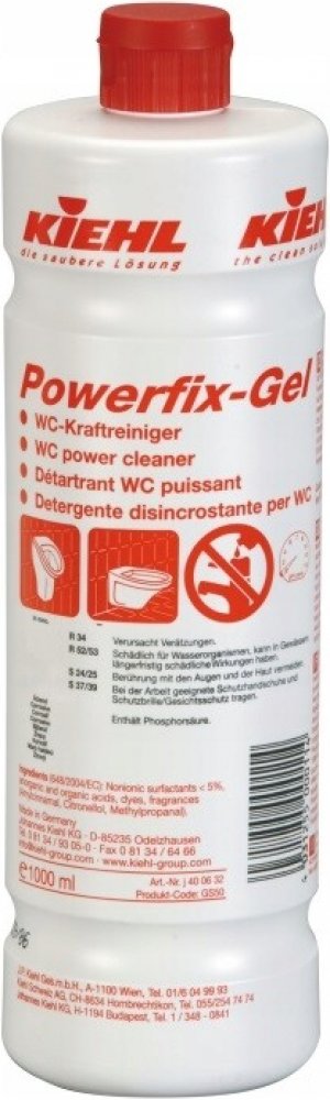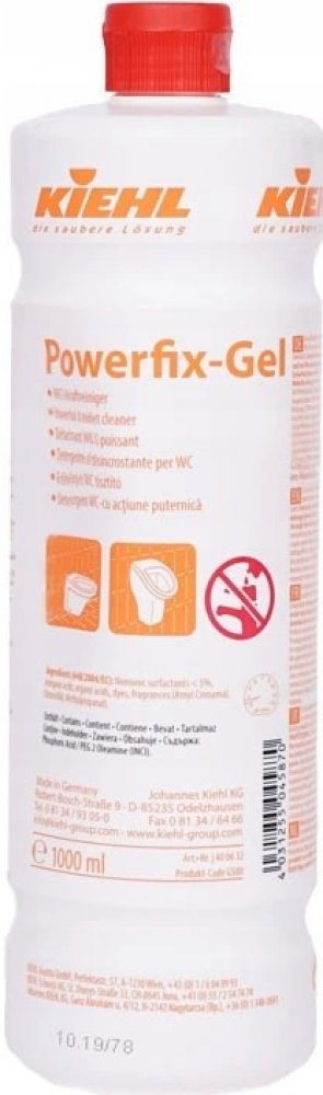 Neředěný Powerfix Gel stříknout pod vnitřní hranu WC mísy, resp. na čištěnou plochu - sanitární keramiku, rovnoměrně rozetřít WC štětkou. Díky hustotě gelu se prodlouží doba působení výrobku na stěnách, stačí použít malé množství. Nechat krátce působit (10 min.) a poté rozpuštěné usazeniny omýt vodou. V případě silného nánosu pod hladinou vody postup opakovat (ideálně působí bez ředění). Čistící roztok nenechat zaschnout! Nesmí přijít na baterie, ne/pochromovanou mosaz, umělé hmoty a plochy citlivé na kyseliny.