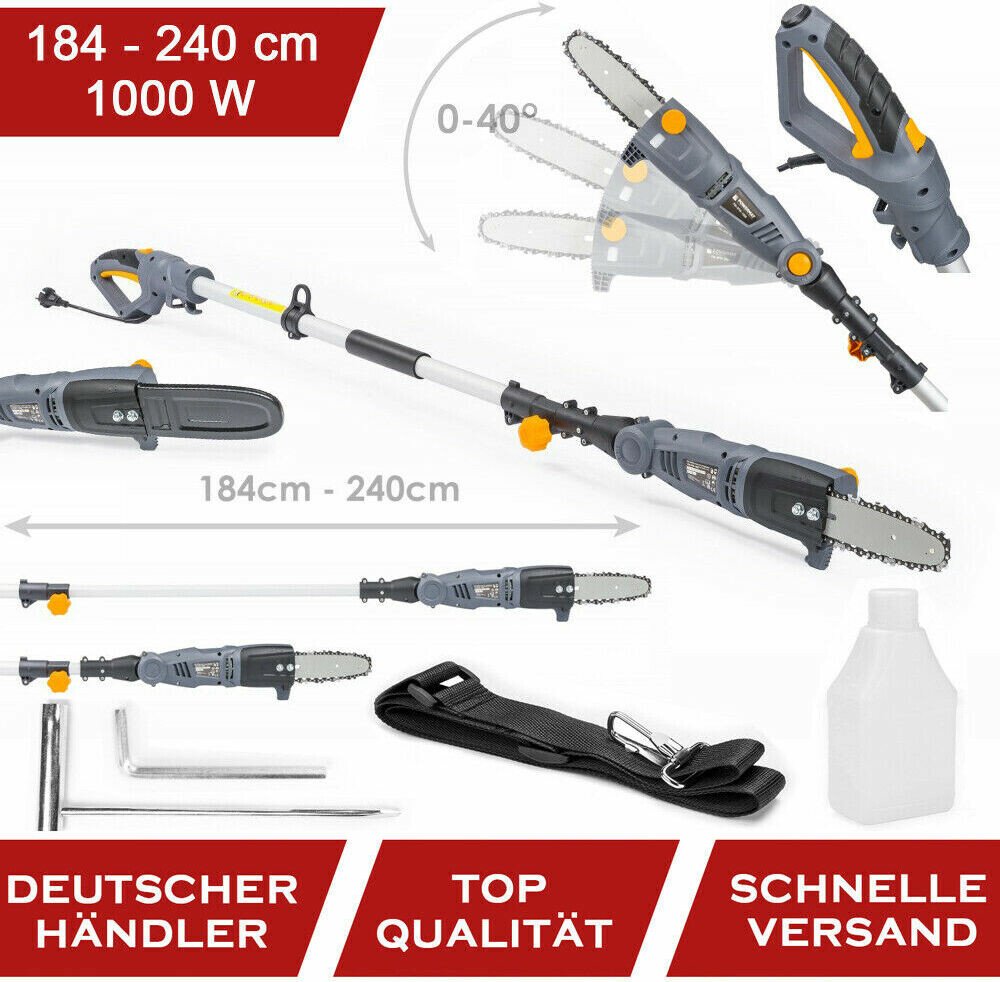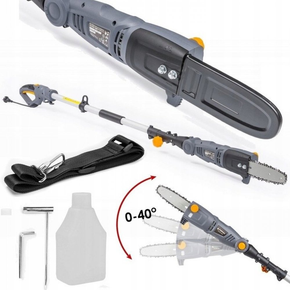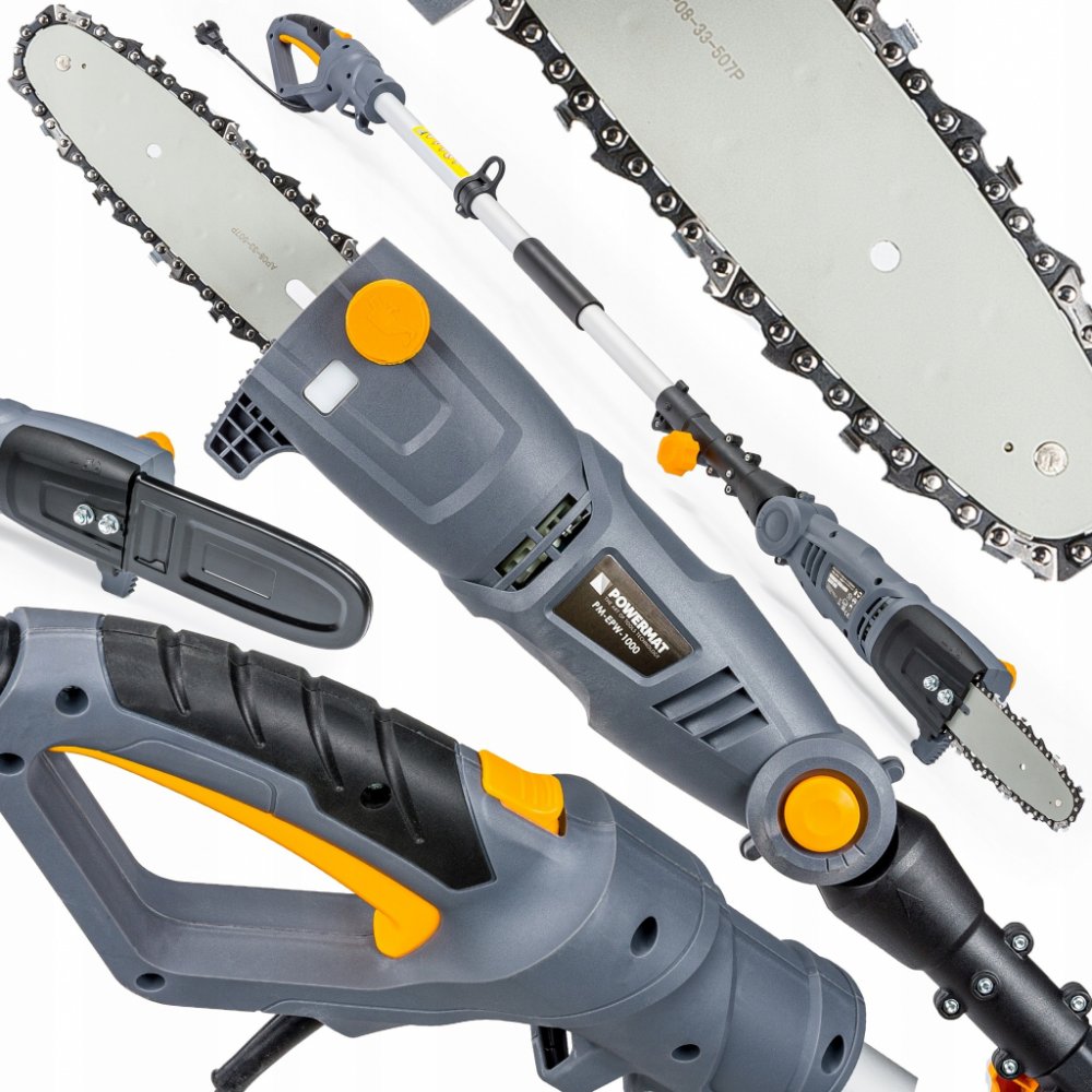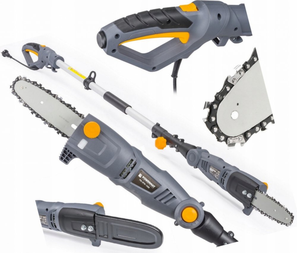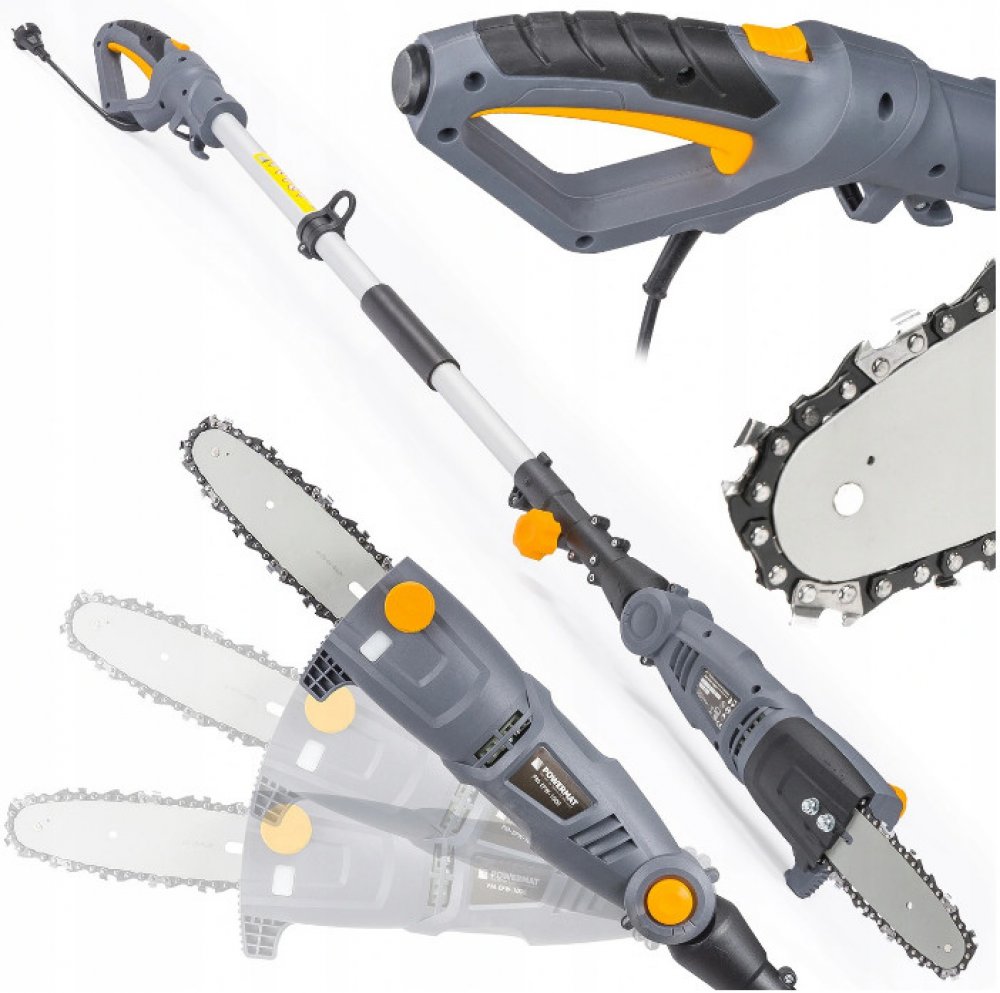 Elektrická pila na teleskopické tyči s třístupňovým sklonem od firmy POWERMAT PM-EPW-1000 s vysoce kvalitní lištou a řetězem. Možnost rychlé a snadné úpravy délky tyče v rozsahu od 184 cm do 240 cm a možnost nastavení sklonu řezné hlavy ve třech úrovních výrazně usnadňuje ořezávání větví. Elektrický motor s výkonem 1000 W umožňuje řezání tlustých větví díky výkonnosti.