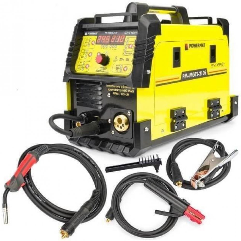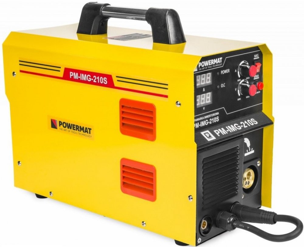 Svařečka Powermat PM-IMG-210S je kombi stroj umožňující sváření v ochranné atmosféře CO2 (MIG) a obalovanou elektrodou (MMA). Díky tomu může být využíván jak v domácích dílnách, tak i živnostníky pro terénní práce kde není možné použít větších svářeček. V sestavě svářečky jsou kabely pro sváření metodou MMA a hořák pro sváření MIG.