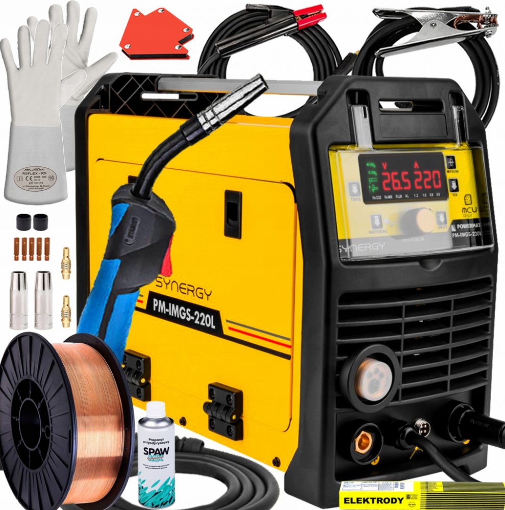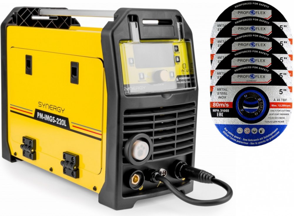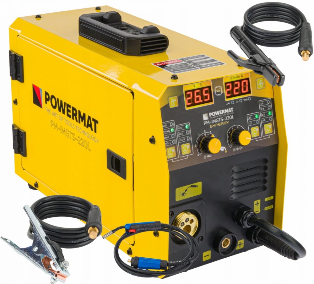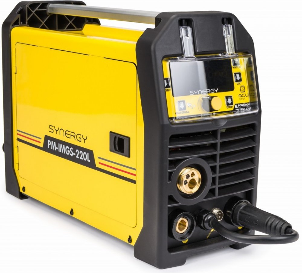 Poloautomatická svařečka Powermat PM-IMGS-230L SYNERGY má velmi široké použití. Umožňuje efektivní svařování různých typů skupin materiálů v široké škále tlouštěk materiálu. Použité IGBT mají příznivý účinek na nižší spotřebu elektřiny, větší odolnost proti rušení a poklesům napětí a dobré charakteristiky oblouku.Ovládací panel s velkým LCD panelem se snadno používá a operátor má rychlý přístup ke všem funkcím. To zlepšuje ergonomii a efektivitu práce.Zařízení má funkci synergického svařování, díky čemuž je možné dosáhnout svaru nejvyšší kvality při svařování všech svařitelných materiálů - zejména z nerezové oceli a hliníku.Možnosti technologie SYNERGYDalší pracovní pohodlí a výhody poskytuje:Synergický režim MIG - funkce, která umožňuje nastavení dvoudobých a čtyřdobých.Indukční kontrola - která vám umožní snížit množství tepla vstupujícího do svařovacího místa. Tímto způsobem můžete zabránit deformaci plechu a poškození ochranné zinkové vrstvy. Tato možnost je užitečná při pájeném svařování.Funkce výběru typu svařovaného materiálu, který v synergickém režimu vybere vhodné svařovací parametry pro usnadnění jeho účinnosti.Regulace Možnosti technologie SYNERGYDalší pracovní pohodlí a výhody poskytuje:Synergický režim MIG - funkce, která umožňuje nastavení 2T a 4T režim.Indukční kontrola - která vám umožní snížit množství tepla vstupujícího do svařovacího místa. Tímto způsobem můžete zabránit deformaci plechu a poškození ochranné zinkové vrstvy. Tato možnost je užitečná při pájeném svařování.Funkce výběru typu svařovaného materiálu, který v synergickém režimu vybere vhodné svařovací parametry pro usnadnění jeho účinnosti.Regulace BURNBACK - funkce, která zabraňuje klesání elektrodového drátu na kontaktní hrot dočasným vytažením drátu po procesu svařování.Funkce bodového svařování - nastavitelná.Funkce VRD - systém snižování napětí, jehož úkolem je vypnout napájení během několika milisekund po svařování. Tato funkce je také zodpovědná za snížení napětí na potažené elektrodě na bezpečnou úroveň. Systém redukce napětí.Funkce bodového svařování - nastavitelná.Funkce VRD - systém snižování napětí, jehož úkolem je vypnout napájení během několika milisekund po svařování. Tato funkce je také zodpovědná za snížení napětí na obalované elektrodě na bezpečnou úroveň. Systém redukce napětí.