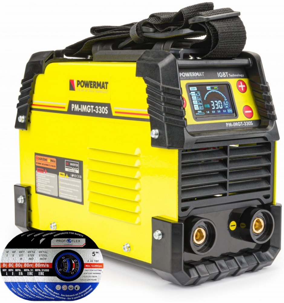 Svářecí invertor PM-IMGT-330S je svářečka jejiž konstrukce je založena na vysoce výkonných IGBT tranzistorech. Je vybaven LCD displejem zobrazující aktuální proud svařovacího proudu nastaveným s plynulou regulací.