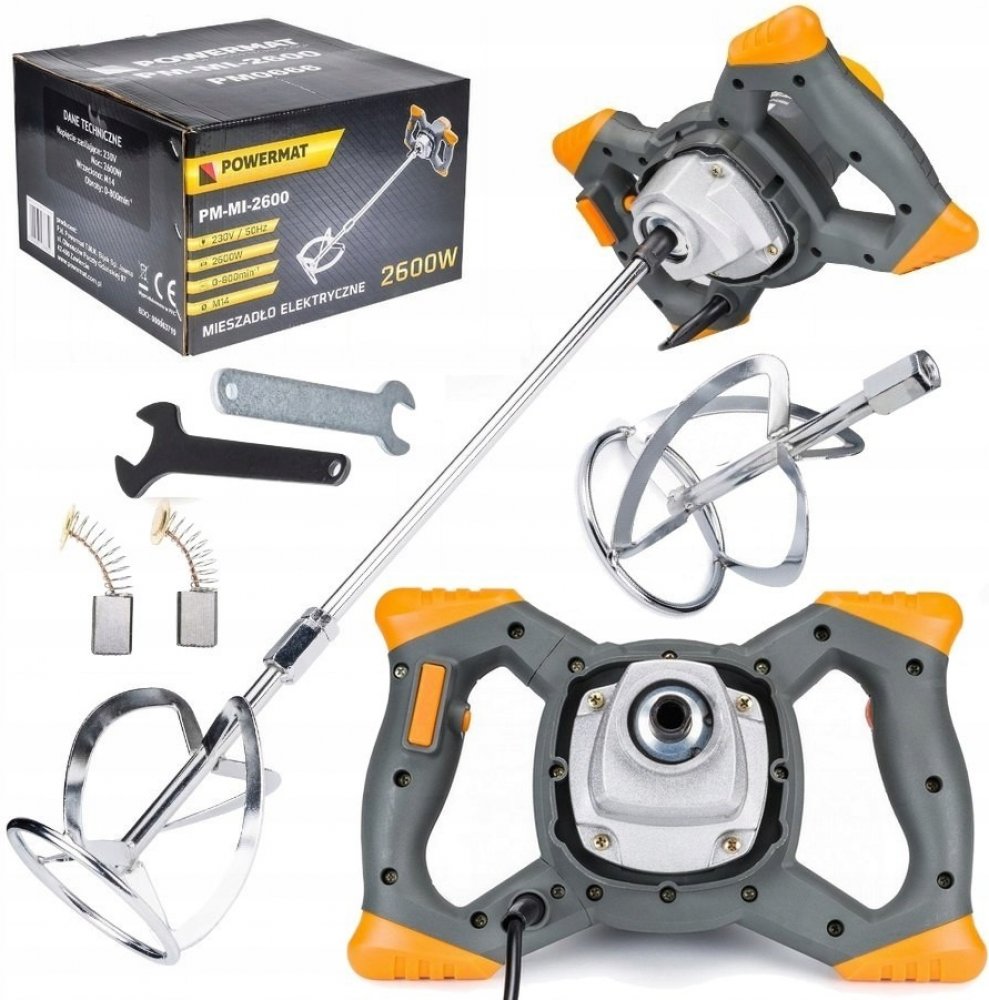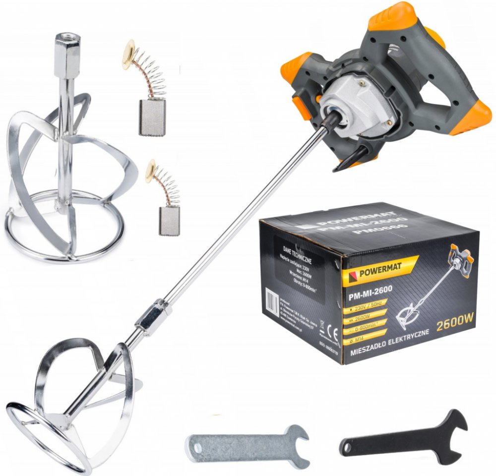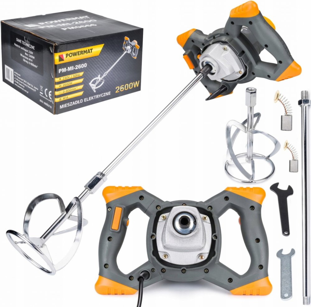 PM-MI-2600 je vysoce výkonný míchač na barvy a malty, který je nepostradatelný pro efektivní míchání tekutých a práškových stavebních materiálů. Tento spolehlivý míchač disponuje 6stupňovou regulací otáček a vyniká jednoduchým ovládáním, což jej činí ideálním pro míchání různých materiálů, jako jsou barvy, lepidla, sádra, omítkové malty, vápenné a cementové směsi, epoxidové pryskyřice či nehořlavé chemikálie.