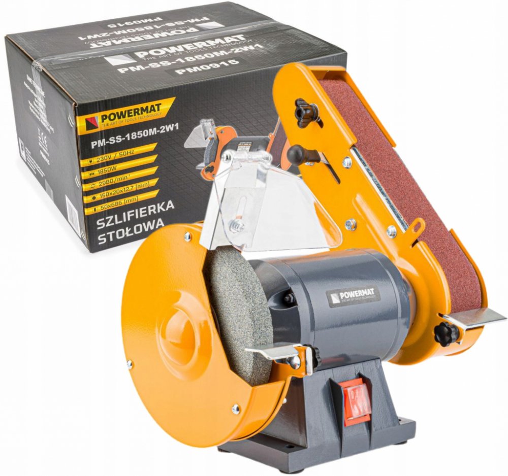 1850 W 150 mm 2950 ot/min 7.1 kg Powermat pásové 50 x 686 mm 20 mm 1850 W 230 V hobby elektrické na dřevo a kovy pro silné odstranění materiálu pro stacionární použití upínací kleštiny s vyššími vibracemi a hlučností