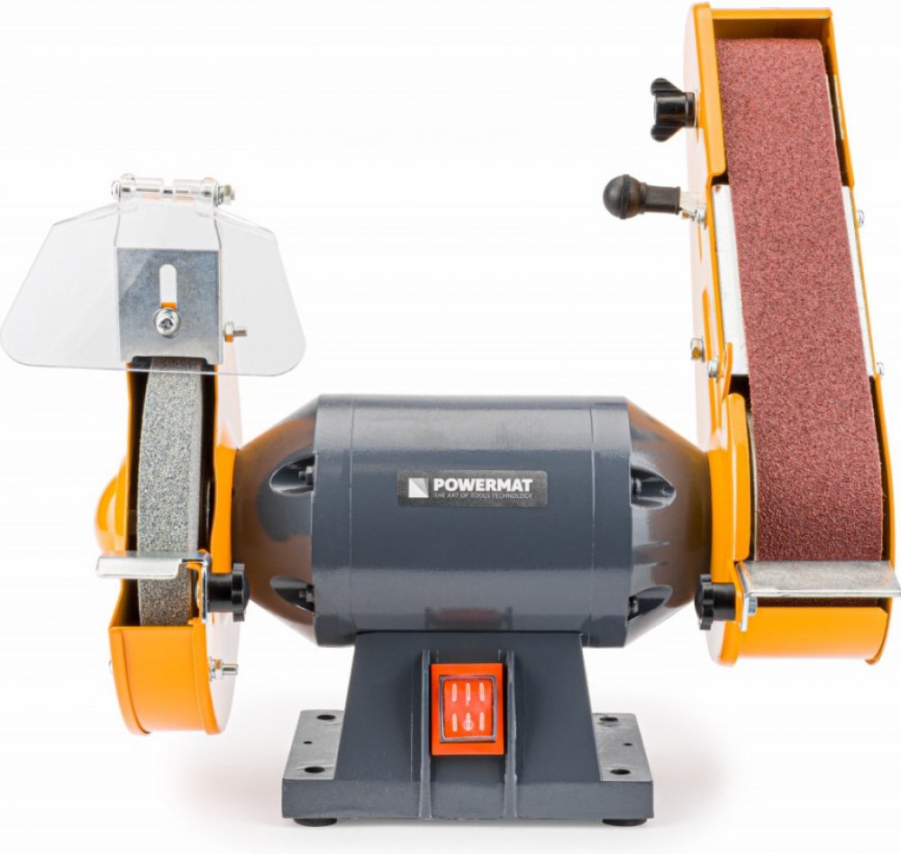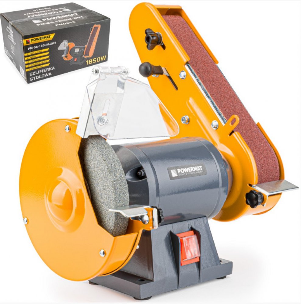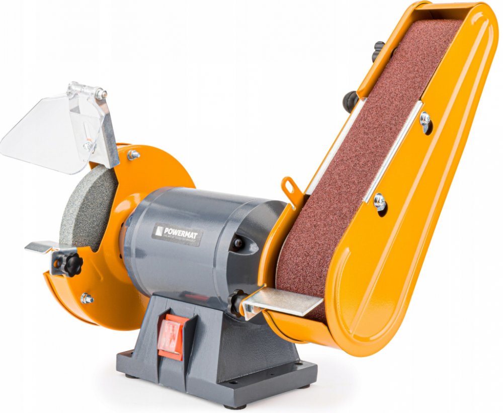 - Ruční brusný stroj POWERMAT určený pro domácí kutily k práci s měkkými kovy a dřevem.