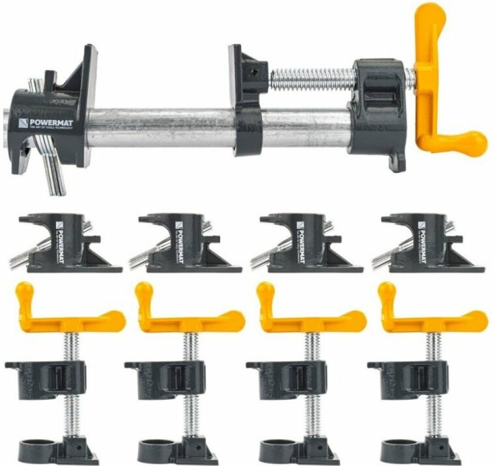 Trubková svěrka truhlářská 3/4", sada 4 ks - POWERMATSada 4 kusů trubkových svěrek umožňuje současné upínání většího počtu bodů nebo práci s rozměrnějšími materiály. Více svěrek zajišťuje rovnoměrné r