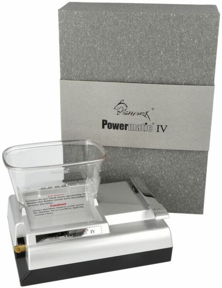 Kompaktní elektrická plnička cigaretových dutinek Powermatic IV je novým nástupcem modelu Powermatic II. Precizně zpracovaná poloautomatická cigaretová plnička v novém designu je určena nejen pro plnění dutinek klasické velikosti King Size - průměr 8 mm, ale také pro stovkové dutinky (100 mm stejného průměru), které jsou plněné tlakem pomocí kovového hrotu. Plničku Powermatic IV nelze používat pro plnění slim nebo ultra slim dutinek. Oproti modelu Powermatic II je vysoká pouhých 5,5 cm (bez násypky tabáku) a tím pádem nezabere tolik místa. Jak jsme zvyklí u elektrických plniček Powermatic, i tato plnička dutinky plní jednotlivě po jednom kuse. Powermatic IV je vybavená velkou násypkou na tabák, díky které vyrobíme mnoho cigaret, aniž bychom museli tabák stále doplňovat. Na horní straně najdeme prostor pro vložení násypky na tabák, tabákovou komoru. Na pravé straně je umístěná ovládací kovová páka, která spouští plnění dutinky jednoduchým pohybem shora dolů. Plnička je velmi jednoduchá na ovládání - zvednete ovládací páku nahoru, naplníte zásobník tabákem, nasadíte dutinku na kovový hrot a lehkým pohybem páky dolu se začne dutinka plnit. Cigareta je vyrobena během pár sekund bez jakékoliv námahy. Elektrická plnička cigaret Powermatic IV je dodávaná s praktickým příslušenstvím k údržbě a čistění, které Vám pomůže udržet plničku ve skvělé kondici. Kvalitní plnička cigaretových dutinek Powermatic IV je vylepšeným typem plničky Powermatic II, která se těší velké oblibě díky své kvalitní konstrukci a perfektní funkčnosti. Originální balení obsahuje: plničku Powermatic IV, tabákovou násypku z tvrzeného plastu, napájecí síťový adaptér a čistící kartáčky včetně jehly.