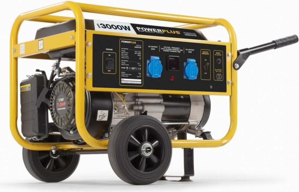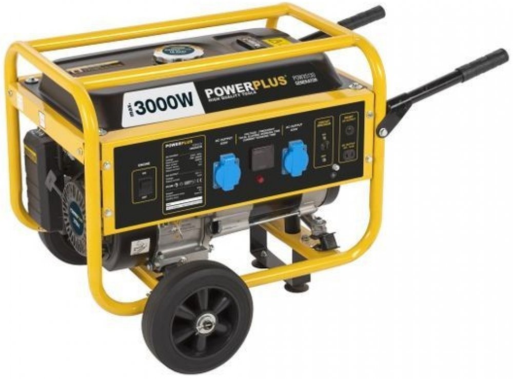 POWX5130 od PowerPlus je velmi výkonný benzinový generátor s jmenovitým výkonem 2.800W, což je více než dostačující pro většinu aplikací. Je nepostradatelný pro elektrické napájení na dovolené, během výpadků proudu, nebo když je pro elektrické nářadí potřeba napájecí zdroj mimo síť. Díky velké palivové nádrži o objemu 15 l s praktickým ukazatelem hladiny paliva poběží generátor asi plus /- 9 hodin bez doplňování. Robustní kola a rukojeť pomáhají dostat generátor na požadované místo bez námahy. Protože při jeho výrobě byla použita nejnovější technologie, má tento generátor nižší emise CO2 a produkuje méně hluku. POWX5130 od PowerPlus je velmi výkonný benzinový generátor s jmenovitým výkonem 2.800W, což je více než dostačující pro většinu aplikací. Je nepostradatelný pro elektrické napájení na dovolené, během výpadků proudu, nebo když je pro elektrické nářadí potřeba napájecí zdroj mimo síť. Díky velké palivové nádrži o objemu 15 l s praktickým ukazatelem hladiny paliva poběží generátor asi plus /- 9 hodin bez doplňování. Robustní kola a rukojeť pomáhají dostat generátor na požadované místo bez námahy. Protože při jeho výrobě byla použita nejnovější technologie, má tento generátor nižší emise CO2 a produkuje méně hluku.