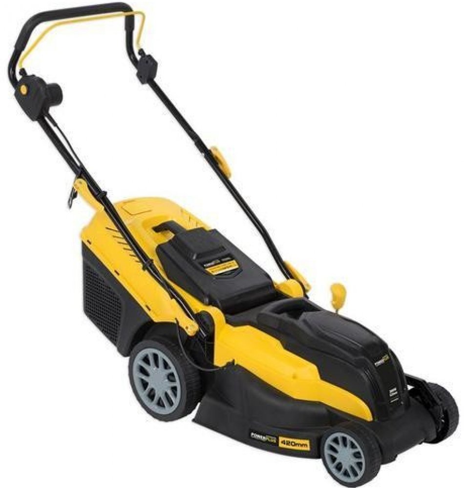 PowerPlus 2000 W 42 cm plastové 13.5 kg bez pojezdu elektrické rotační 40 l 500 m2 2000 W elektromotor 3450 ot/min 80 mm s plastovým košem