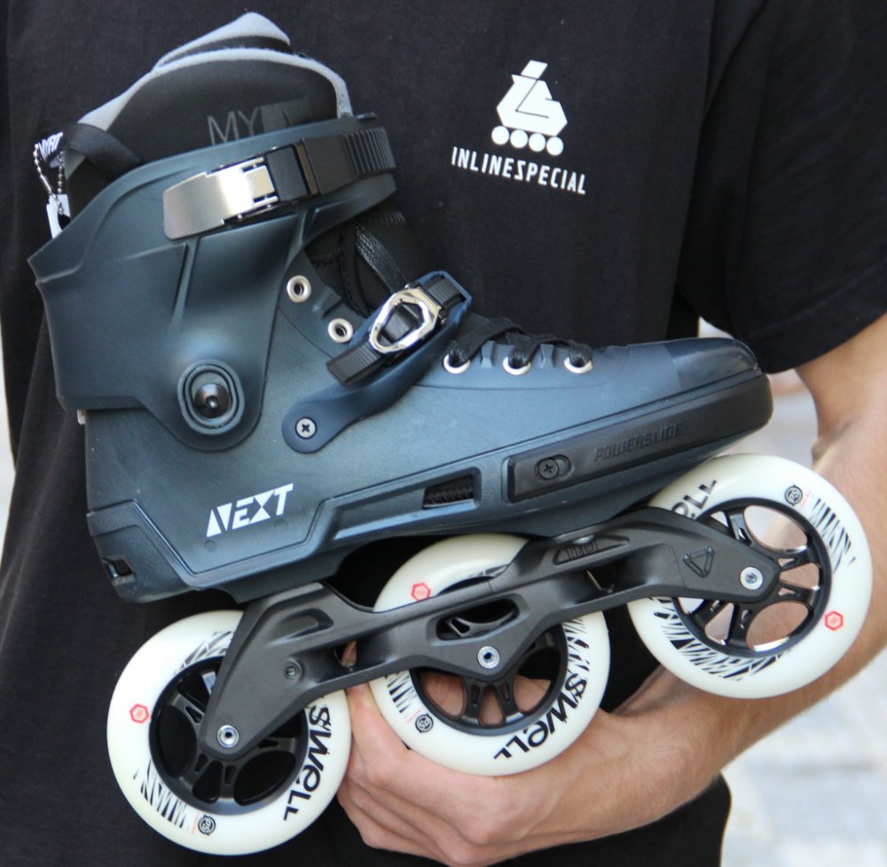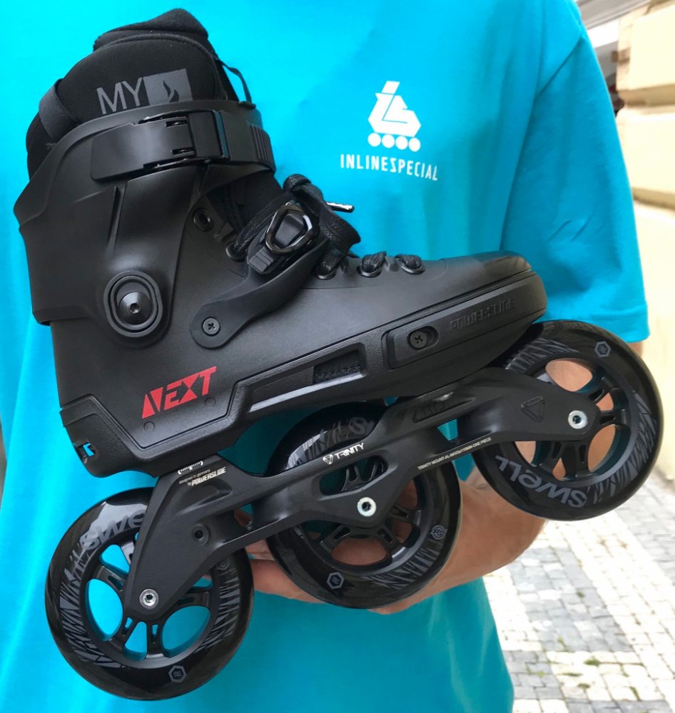 Sestavili jsme nejžádanější Nexty v jedinečné celočerné verzi! Model 110 Ultra black je osazen pevným litým Trinity rámem z hliníku, kolečky Powerslide Spinner o průměru 110mm a tvrdosti 88a s ložisky WCD Freespin Abec 9. Jedná se o střední velikost koleček z kategorie triskate. Brusle si tak zachovávají nízké těžiště i skvělou ovladatelnost. Navíc si hravě poradí i s horším povrchem. Skelet brusl...