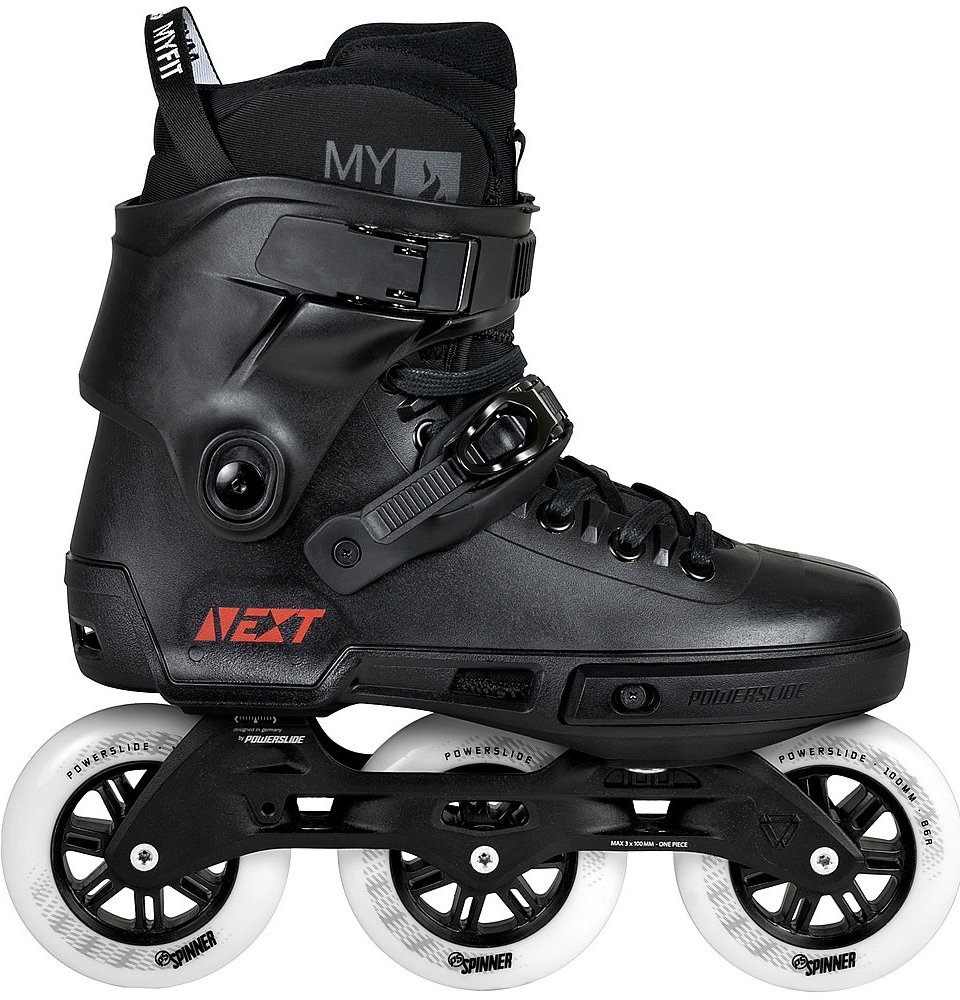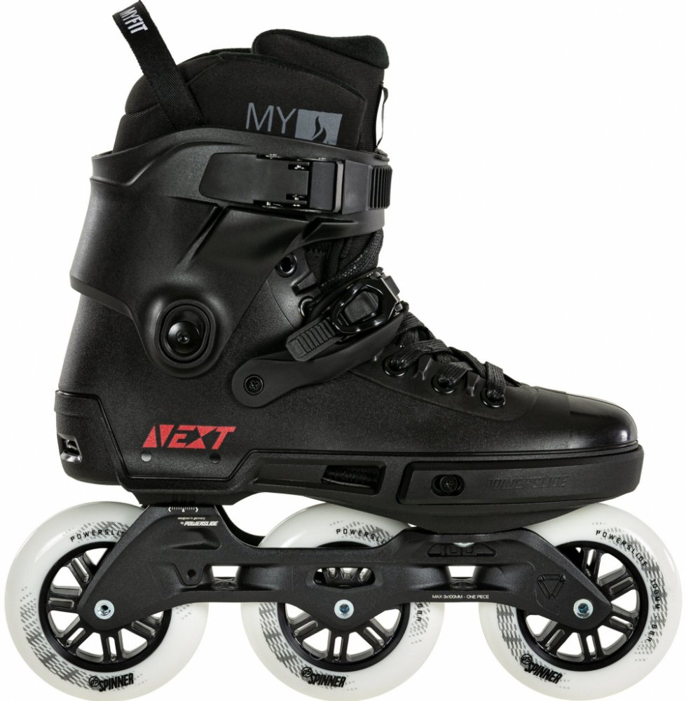 Kolečkové brusle Powerslide Next Core Black 100 Trinity - moderní a čistý design bruslí, jsou ideální do města, na běžné projížďky po cyklostezkách, ale i na freeride urban skating plný skoků a slidů.