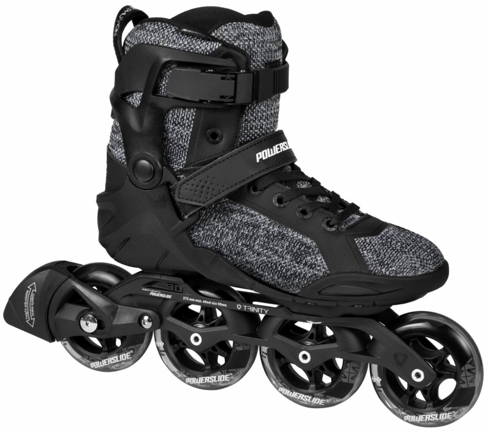 Pohodlí, stabilita, kvalita a super cena! To vše spojené do klasického designu nových inline bruslí Powerslide Radon Enzo 90. Ty jsou postaveny na roky osvědčené botě řady Phuzion, která je nově osazena revolučním Trinity rámem z hliníku o délce 275mm s kolečky Infinity 90mm/83a a ložisky WCD Abec 7. Jedná se o střední velikost koleček z kategorie fitness. Brusle jsou velmi stabilní, mají nízké těžiště a dobrou ovladatelnost. Minimalizovaný skelet poskytuje příjemnou oporu v kotníku, čímž napomáhá správnému vedení brusle. Pro lepší ventilaci je ve spodní části umístěno několik větracích otvorů. Zavazování pomocí plochých tkaniček, klasické přezky nad kotníkem a pásku na suchý zip přes nárt drží nohu spolehlivě na svém místě . Anatomicky tvarované vnitřní polstrování z EVA pěny je příjemné již od prvního obutí a rychle se během používání dotvaruje přímo na nohu majitele. Trinity znamená, že rám je uchycen místo dvěma klasickými, rovnou třemi šrouby (jeden pod patou, dva pod špičkou). Toto revoluční řešení umožňuje maximální přiblížení koleček k botě, snížení těžiště a zvýšení stability. Navíc tento systém spolehlivěji tlumí vibrace vyvolané jízdou, lépe přenáší sílu odrazu a poskytuje více kontroly nad jízdou samotnou. Uchycení umožňuje i částečný posun rámu do všech 4 stran a tím možné doladění přímo dle vašich potřeb. Osy kol se z jedné strany šroubují přímo do těla rámu. Servis bruslí je tak extrémně jednoduchý, rychlý a stačí k němu jeden klíč. Posuvný špalek brzdy umožňuje nastavení libovolného úhlu k brzdění, zároveň vydrží díky možnému pohybu delší dobu než u jiných značek bruslí. Brusle Powerslide Radon se čtyřmi 90mm kolečky je velmi pohodlná, stabilní a dobře se ovládá. Jedná se tak o model vhodný pro začátečníky i pokročilé fitness bruslaře. (Pro výběr správné velikosti použijte tabulku velikostí, která je umístěna mezi obrázky produktu.)