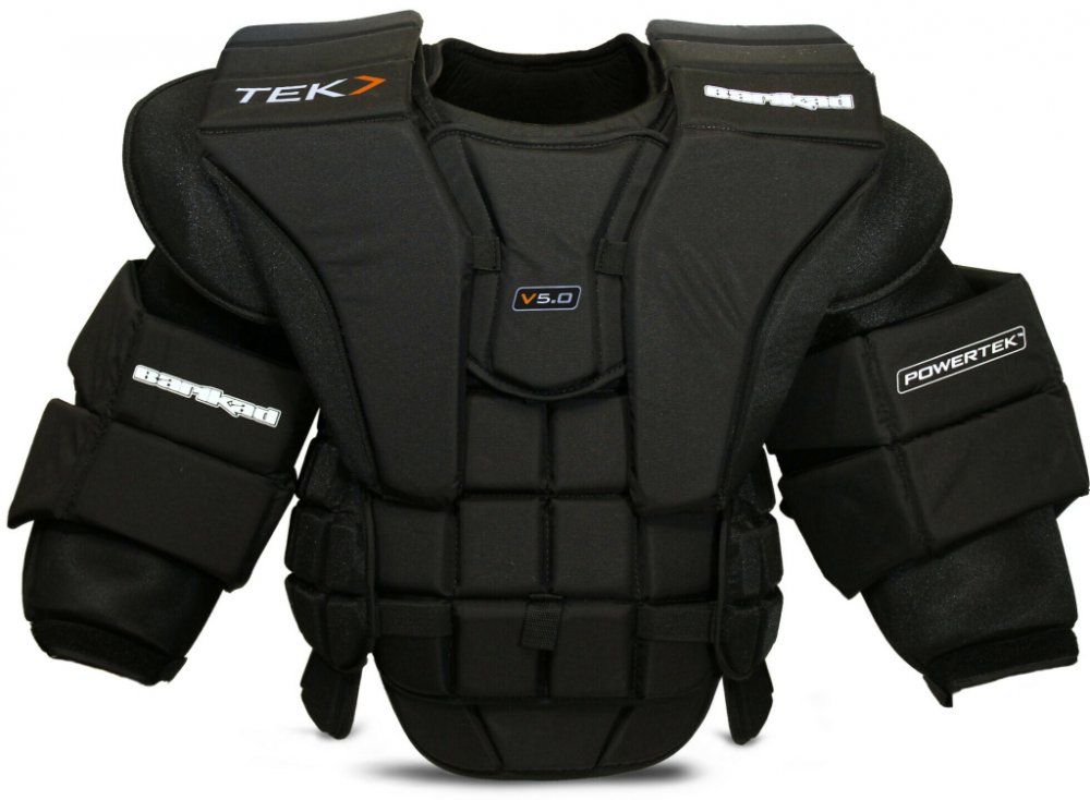 Brankářská hokejová vesta - Žák (youth) • Barva: černá • Amatér • Stupeň ochrany: zvýšená • Střih: univerzální • Chránič ramene: extended shoulder floaters • Chránič hrudní kosti: reinforced protectors for complete chest and arm protection • Chránič bicepsu: reinforced protectors for complete chest and arm protection