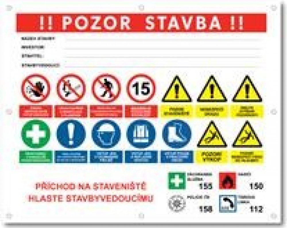 Bezpečnostní banner dodáváme bez vyplněných jmenných údajů (stavbyvedoucí, investor atd.).