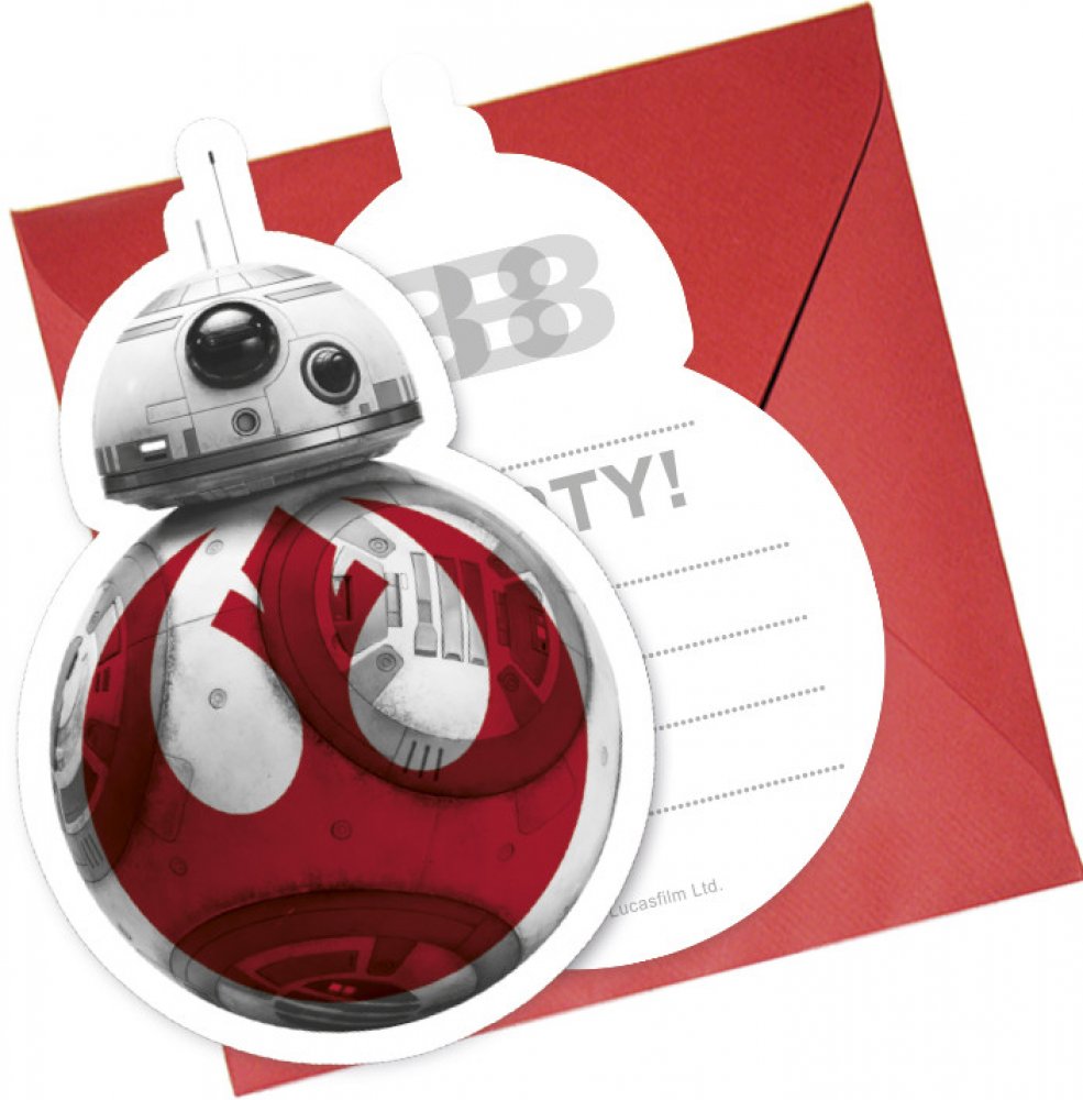 Papírové párty pozvánky s motivem oblíbeného filmu STAR WARS využijí fanoušci filmu k pozvání kamarádů a spolužáků na narozeninovou párty která se bude v tomto duchu odehrávat.