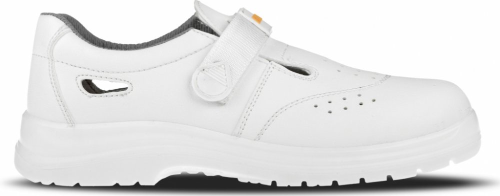 Specializovaná bílá obuv BENNON WHITE O1 SANDAL sandálového střihu. Obuv je vhodná do provozů vyžadujících světlou, lehce udržovatelnou obuv. Svršek bot je vyroben z voděodolného mikrovlákna. Podšívka je na nártu z netkané textílie a v zadní části bot z antibakteriálního materiálu Cambrelle. Vkládací stélka je anatomicky tvarována, antibakteriální, z materiálu EVA + Cambrelle. Mezipodešev je z měk...