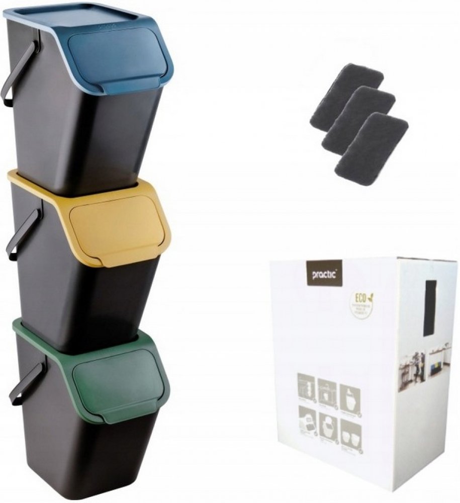 Sada 3 nádob na tříděný odpad značky Practic - Modrá, Žlutá, Zelená+ filtry DÁREK