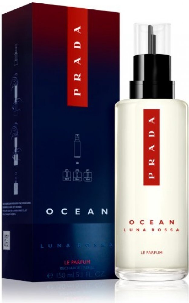 Luna Rossa Ocean Eau de Parfum - mužná, extrémní, smyslná: Luna Rossa Ocean Eau de Parfum - nová mužná intenzita od Prady. Vůně silné, transformativní cesty, která otevírá nové dimenze. Pánská vůně, která ztělesňuje přesvědčení, že s technologií jako prodloužením sebe sama můžeme posouvat hranice, nově definovat možné a pozvednout svůj výkon. Magnetizující pánská vůně s hřejivými tóny: V parfémované vodě Prada Luna Rossa Ocean se snoubí intenzivní sofistikovanost a smyslnost díky průlomové technologii s těmi nejlepšími přírodními ingrediencemi. Fougére vůně obsahuje povzbuzující výtažek z grapefruitu, který se snoubí s dřevitými tóny kadidla a bohatým vanilkovým akordem. Sestava je umocněna špičkovou molekulou AmberXtreme™, která zvyšuje intenzitu složek a přináší silný účinek. Luna Rossa Ocean je dlouhotrvající pánská vůně pro muže, kteří se nekompromisně postaví výzvě. Flakon inspirovaný technologickou dokonalostí a elegantní, dynamickou krásou extrémních plachetnic odráží sílu vůně. Je vyveden v elegantní tmavě modré barvě, která odkazuje na magnetickou sílu oceánských hlubin. Ikonická červená linie značky Prada je symbolem inovace. Elegantní, půlnočně černý uzávěr je opatřen červenou tečkou, symbolickým odkazem na Luna Rossa, červený měsíc. - Povzbuzující a mužná vůně pro muže. - Pánská vůně s kompozicí svěžího grapefruitového extraktu, rafinovaného kadidla a vanilkových lusků. - Možnost doplnění náplně.
