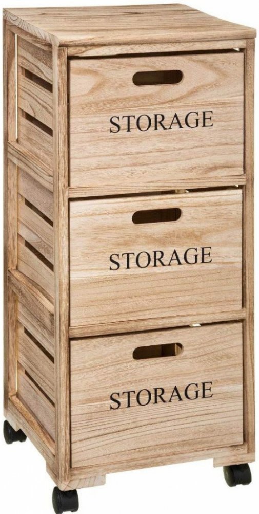 Vozík na kolečkách se 3 boxy Barový vozík na kolečkách v přírodní barvě je nezbytným kusem nábytku pro efektivní skladování potravin ve spíži. Vozík je vyroben ze dřeva paulovnie a plastu a lze jej snadno sestavit. Hledáte snadný způsob, jak uskladnit zeleninu nebo mouku? Nehledejte nic jiného než vozík na kolečkách! Všestranný a odolný vozík je dokonalým doplňkem každé kuchyně, jídelny nebo spíže. Je vyroben ze dřeva a plastových koleček a byl navržen pro dlouhodobé používání. Jeho přírodní odstín navíc jistě zapadne do každého interiéru. Díky třem objemným boxům a frézovaným rukojetím není s tímto vozíkem problém pohostit více hostů. Snadno ho sestavíte během několika minut a budete si užívat pohodlí, které poskytuje - nebudete litovat! Užijte si, že máte všechny ingredience po ruce díky tomuto mimořádně užitečnému předmětu ještě dnes! Jaké výhody vozík na kolečkách nabízí? Tři boxy poskytují dostatek úložného prostoru Vyžaduje montáž, ale vyplatí se pro pohodlí, které poskytuje Elegantní design se bude hodit ke každému interiéru Maximální nosnost 35 kg