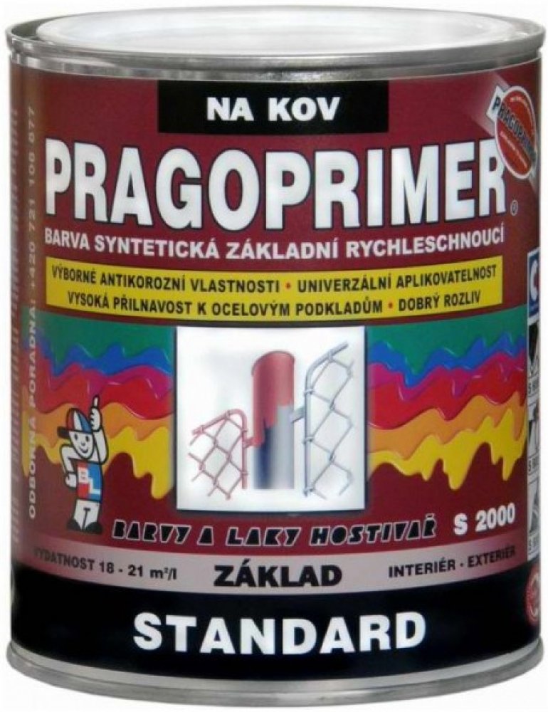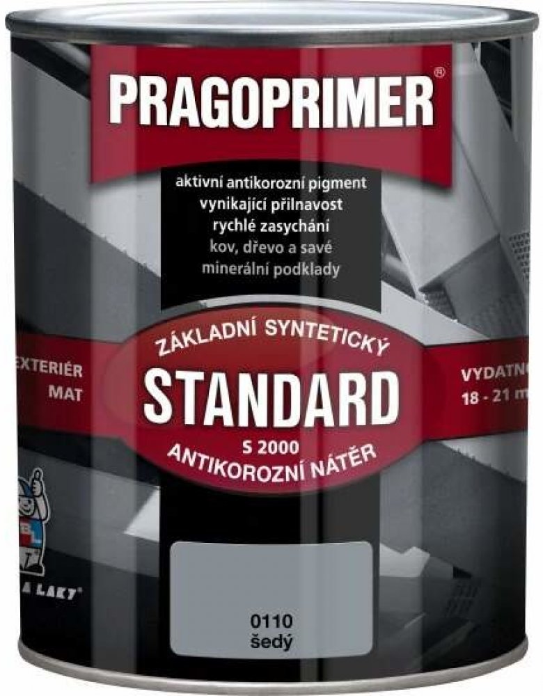 1. 1x barva S 2000 Pragoprimer Standard, zasychání nátěru 24 hodiny. Optimální tloušťka jedné vrstvy je 25 -30 ?m. Zasychání na kovových předmětech se může urychlit přisoušením do teploty 80°C;