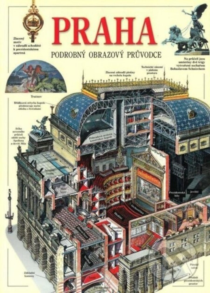 Podrobný obrazový průvodce detailně rozebírá 156 stavebních památek Prahy včetně např Pražského hradu katedrály sv Víta Strahovského kláštera chrám sv Mikuláše na Malé Straně Malostranských palácových zahrad Valdštejnského paláce Karlova mostu Staroměstské radnice Obecního domu Staronové synagogy a Starého židovského hřbitova Zahrnuje většinu pražských kostelů synagog budovy divadel Rudolfina Národního muzea samostatnou kapitolou představuje Vyšehrad a Trojský zámek Průvodce obsahuje také panorama Prahy z Petřínské rozhledny a panoramatickou mapu centra Prahy s vyznačením všech popisovaných míst 1400 barevných fotografií a kreseb zachycují detaily staveb a jejich bohatou výzdobu jako jsou sochy obrazy a nástěnné malby