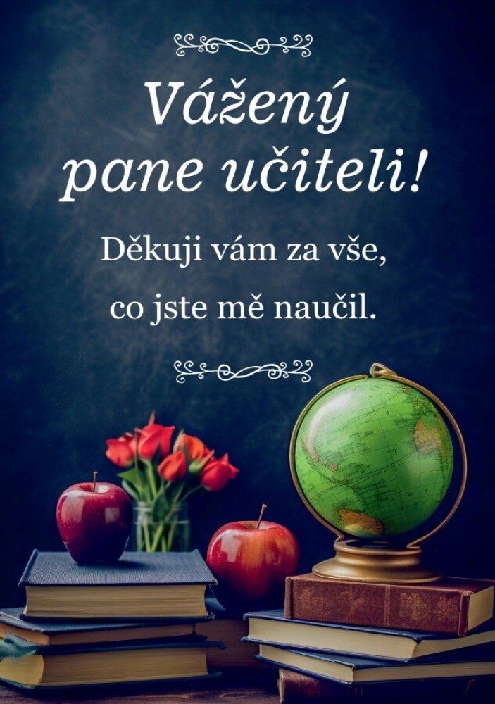 Znáte skvělého pana učitele? Oceňte ho nezapomenutelným přáníčkem. Přání vždy udělá radost a zůstane milou vzpomínkou. Na konci školního roku přiložte k vašemu dárku pro pana učitele toto přáníčko a vždy při pohledu na darované přání si jistě pan učitel vybaví svého oblíbeného studenta.