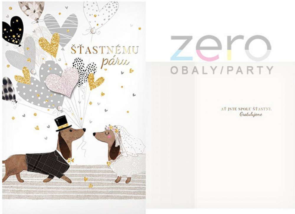 Přání s textem svatební + obálka - pejsci