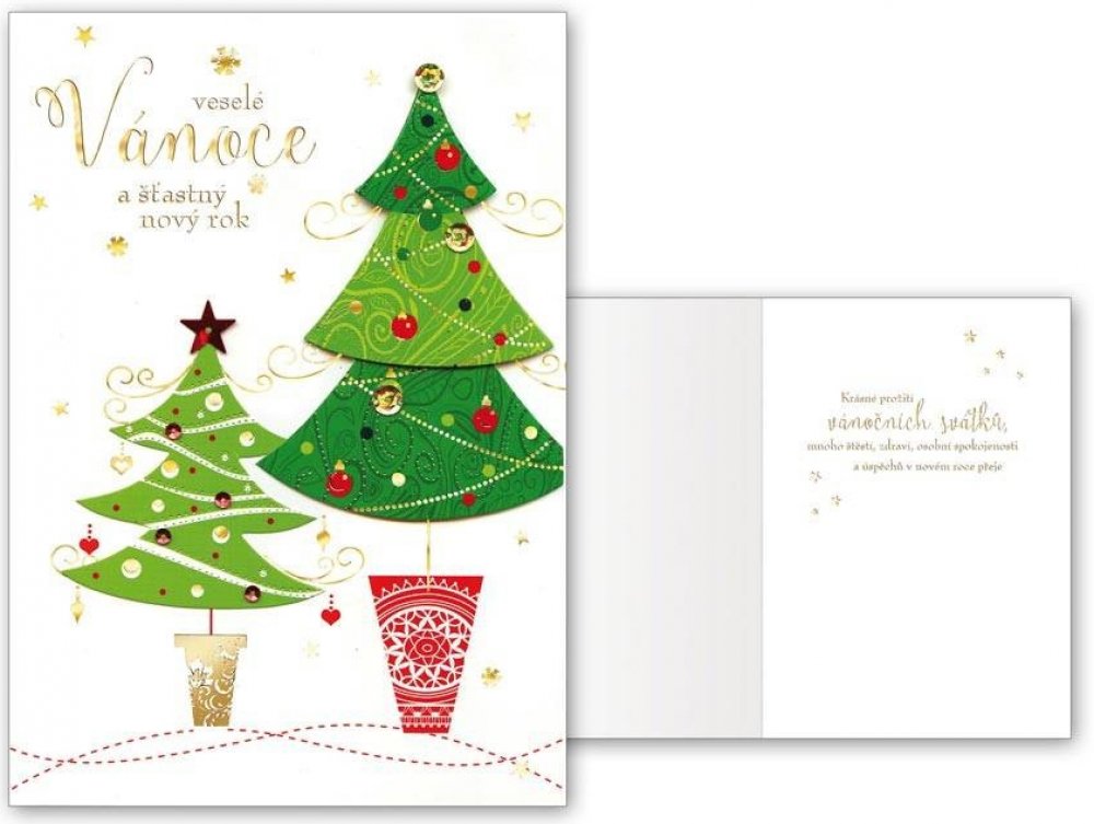 Novoroční přání s textem, neboli PF. Nezapomeňte popřát známým do nového roku. Zajisté je potěší, že jste si na ně vzpomněli. Text na přední straně přání: Veselé Vánoce a šťastný nový rok Text uvnitř přání: Krásné prožití vánočních svátků, mnoho štěstí, zdraví, osobní spokojenosti a úspěchů v novém roce přeje. Papír: pohlednicový karton 240 g Přání je baleno v sáčku, součástí balení je i dopisní obálka.