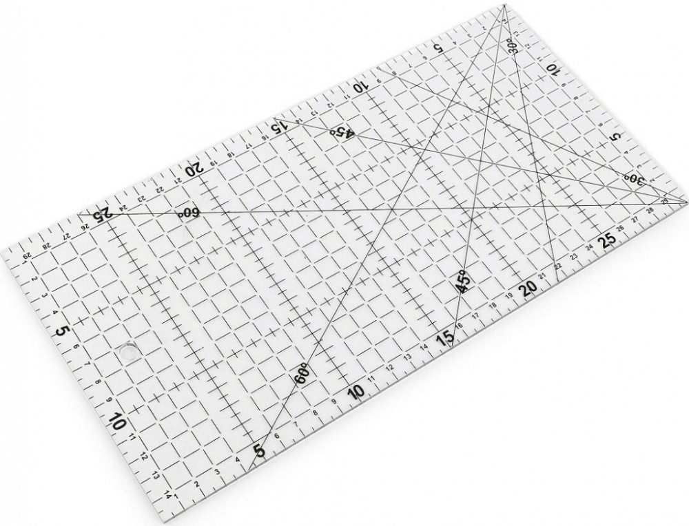 Pevné plastové pravítko oceníte pro jeho univerzálnost. Dá se využít nejen na techniku patchwork, ale i na další ruční práce jako jsou quilting, scrapbooking a šití. Vyznačené jsou hodnoty po půl cm a úhly 30°, 45° a 60°.