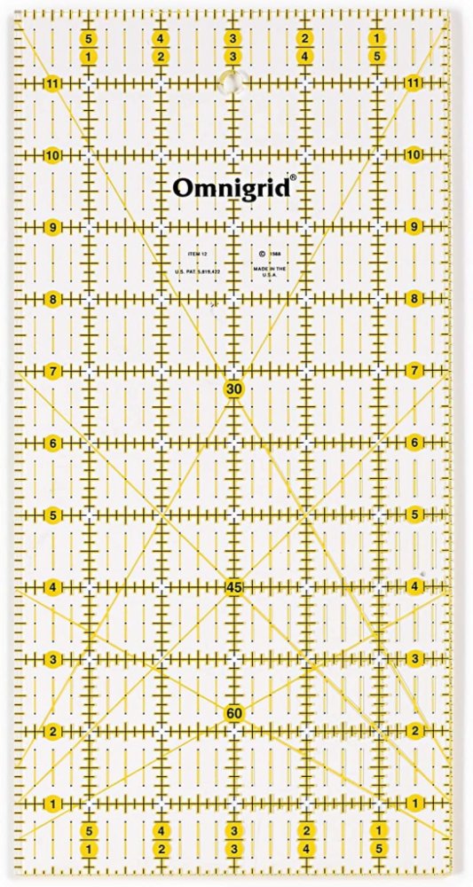Jako většina patchworkových pravítek má i toto naznačeny úhly 30,45 a 60°