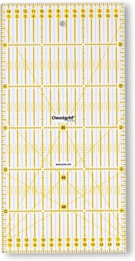 Odolné plastové rastrové pravítko (s rastrem po centimetrch) pro řezání textílií řezacími kolečky.