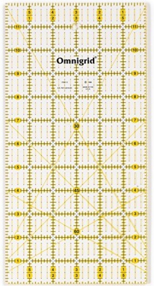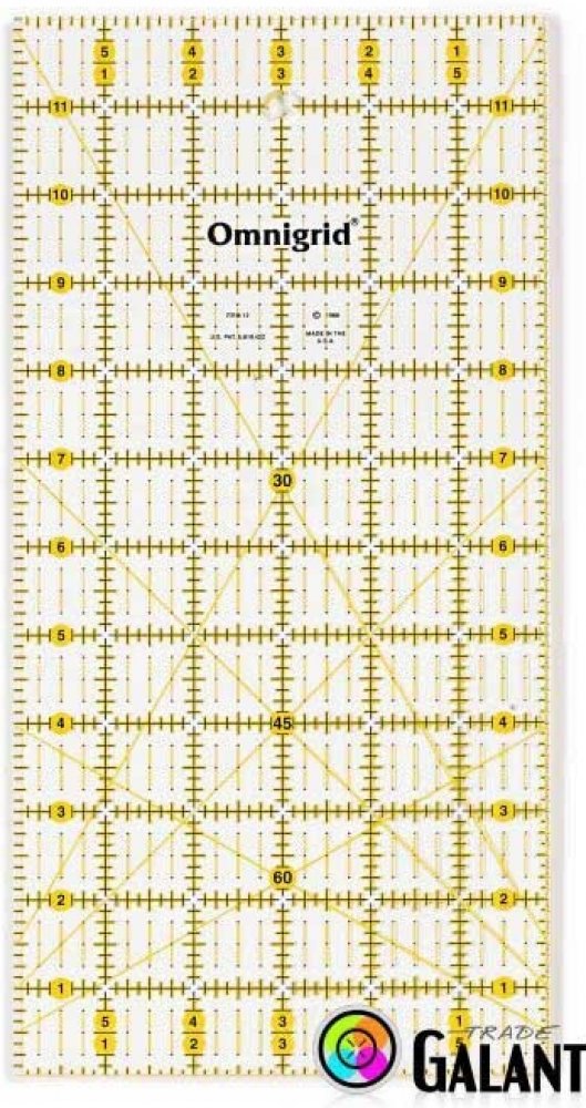 Univerzální pravítko na PATCHWORK, škála v palcích, s označením úhlů 30°, 45° a 60°. USA výrobek, cena za 1 ks.