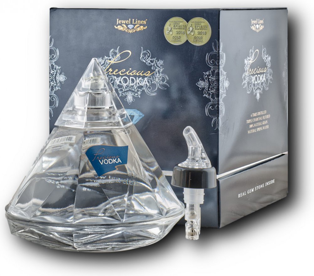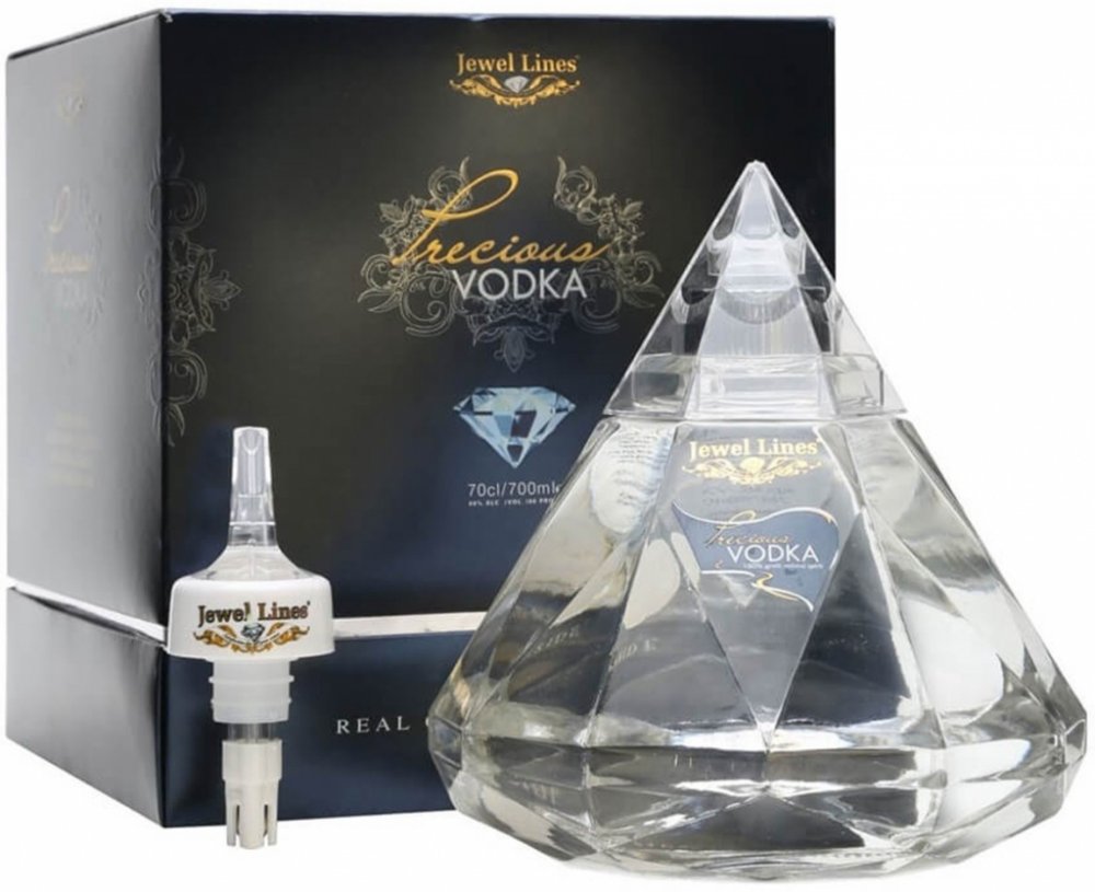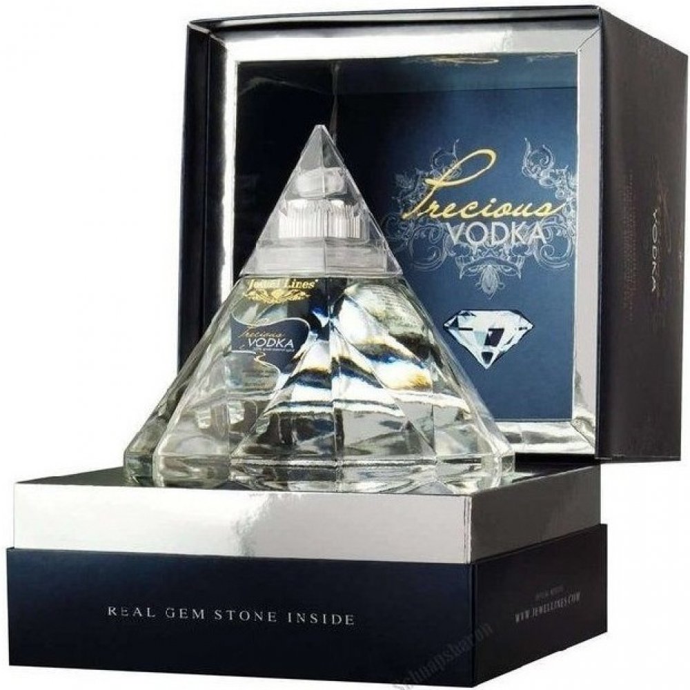 Příběh Precious Vodky začíná designem láhve koncipované jako rub briliantového brusu v diamantech. Po četných testech byl vybrán „pre-Tolkowsky“ střih. V horní kónické části láhve je oddělené místo pro umístění drahých kamenů z kolekce Jewel Lines.